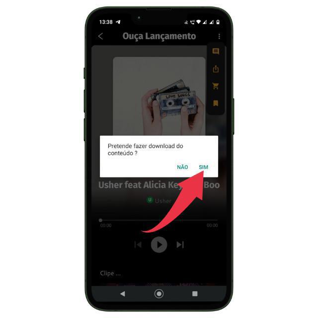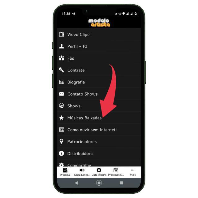 Confira seus áudios baixados no menu ( Músicas baixadas ).
